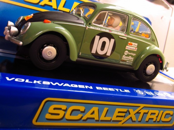 Matthew, who is an artist by trade, discovered the car in a barn in Kent; however it originally hailed from Sweden. The strip down and rebuild was tackled by Henley Beetle’s to ready it for the rally ahead. Modifications included a Roll Cage, under body skid plate, strenghtening to the front axle coupled with heavy duty shock absorbers. The tyres were also upgraded for those more suited to desert and off road conditions. As it happens, Matthew’s car was designed to be a homage to the Beetle’s that competed in the 1964 Spa-Sofia-Liege rally, as can be seen here. So it is quite fitting that Scalextric have chosen to pay tribute to his car by releasing their model. A tribute to a tribute.